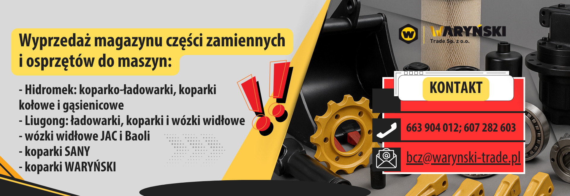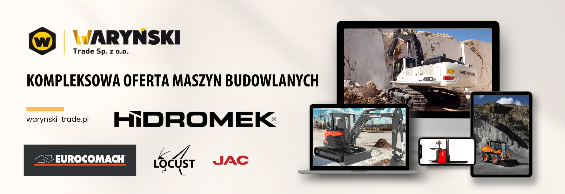Waryński Trade Sp. z o.o. to uznany dostawca maszyn budowlanych w Polsce, oferujący kompleksowe rozwiązania dla branży budowlanej, drogowej oraz przemysłowej. Firma, z historią trwającą od 1992 roku, nawiązuje do wieloletniej tradycji marki Waryński, której korzenie sięgają ponad sześćdziesięciu lat wstecz. Od tego czasu, Waryński Trade wypracował pozycję czołowego dystrybutora maszyn budowlanych, stale dostosowuje się do zmieniających się potrzeb rynku oraz wdraża nowoczesne technologie i rozwiązania techniczne. W ofercie Waryński Trade klienci znajdą szeroki asortyment maszyn najwyższej klasy, niezawodne wsparcie serwisowe oraz części zamienne renomowanych marek, takich jak Hidromek, JAC, Eurocomach i Way Industries.